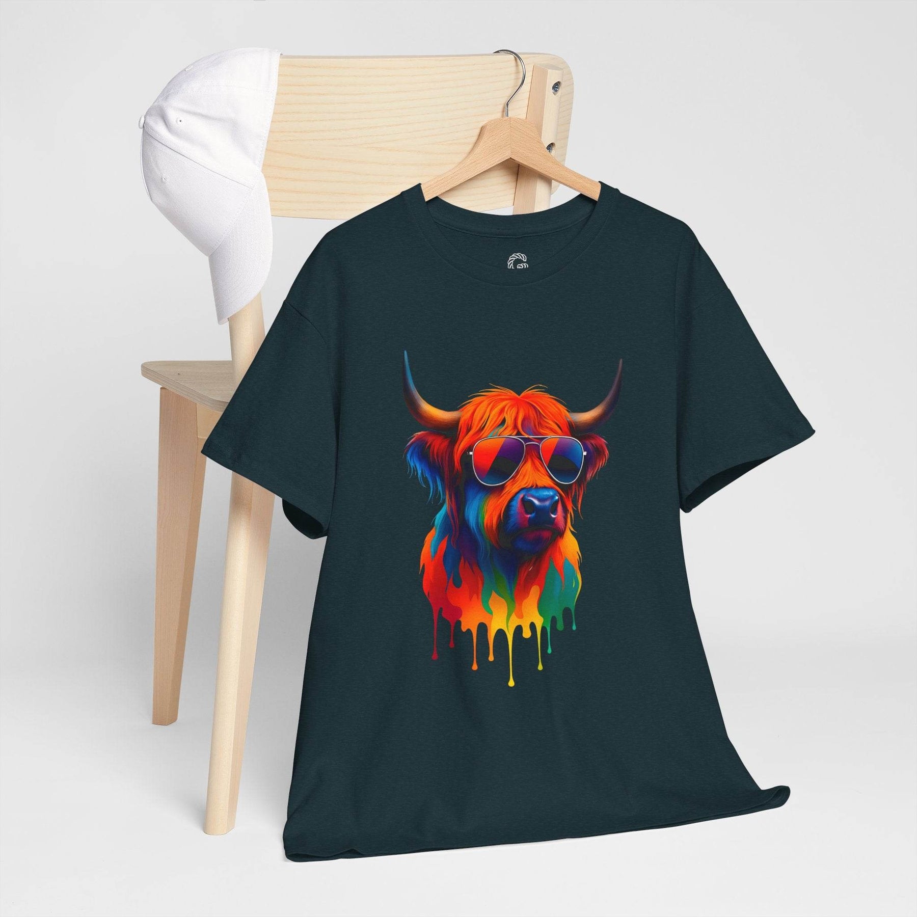 Stand out from the crowd with this colorful cow graphic tee. Each shirt is made for comfort and durability. The design keeps its bold colors after many washes. You get style and quality in one piece.