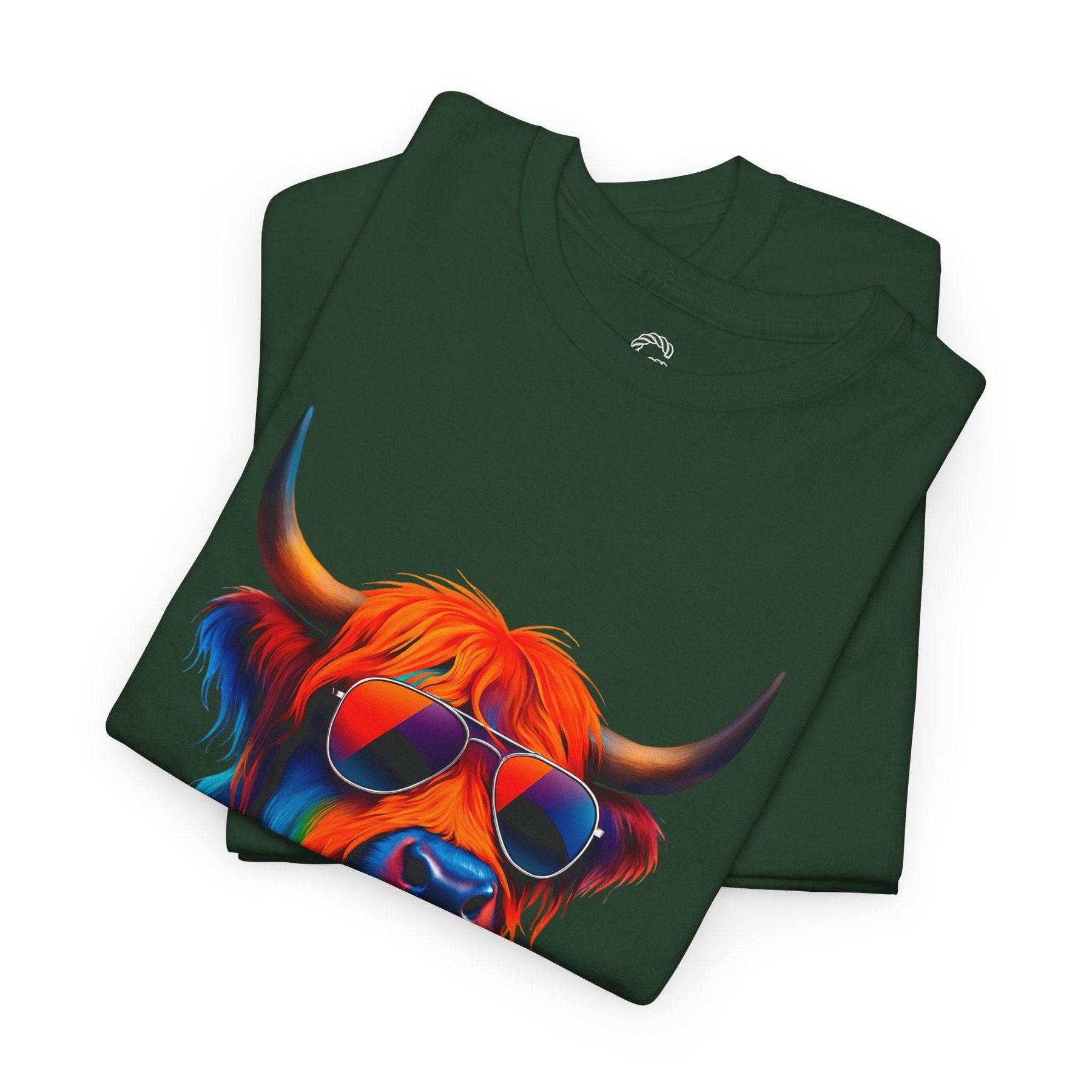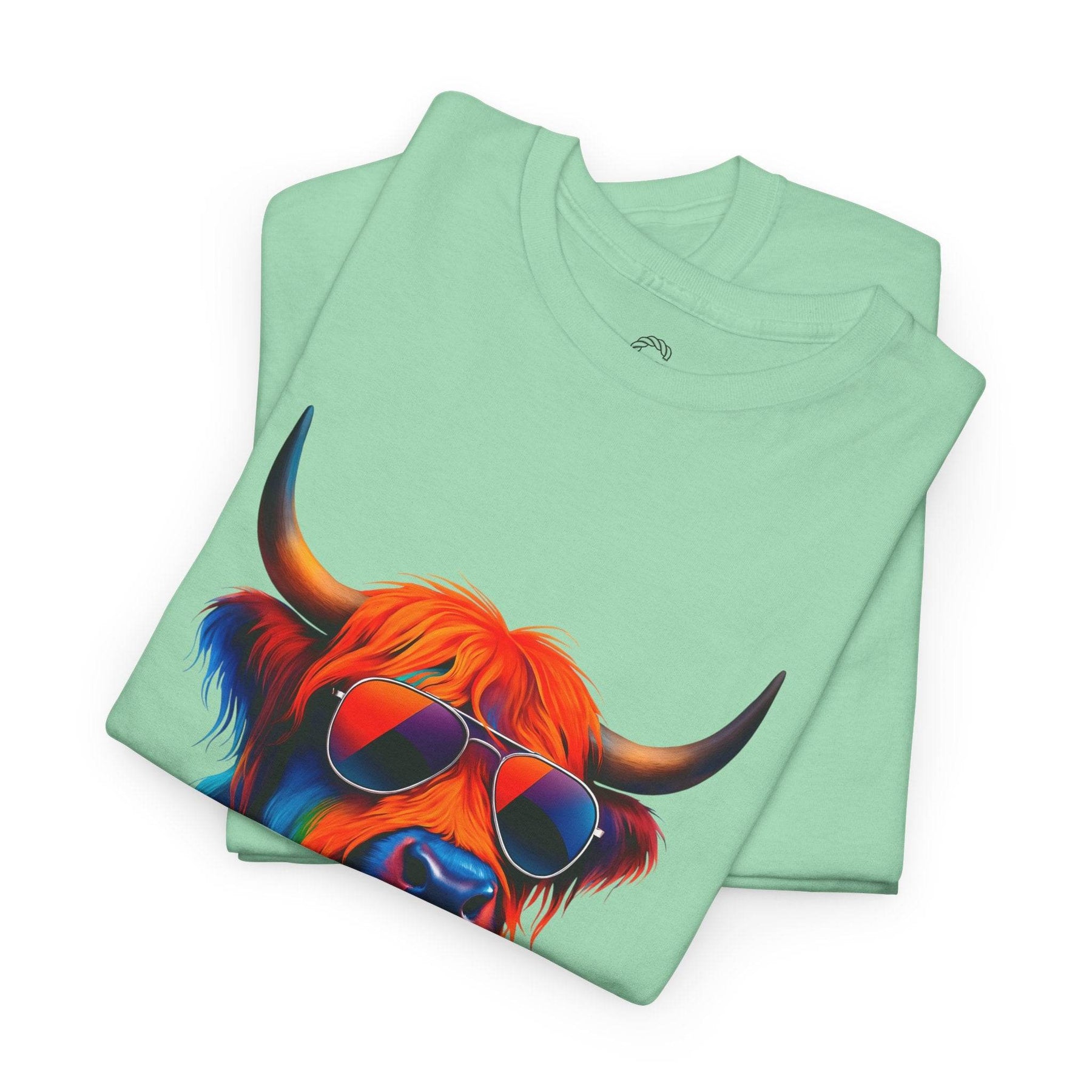 Make a statement with the Colorful Cow Vibe Tee. This shirt uses premium cotton that feels soft against the skin. The bold print features a vibrant cow wearing sunglasses, perfect for anyone who loves a playful look. The unisex fit gives flexibility for any body type.