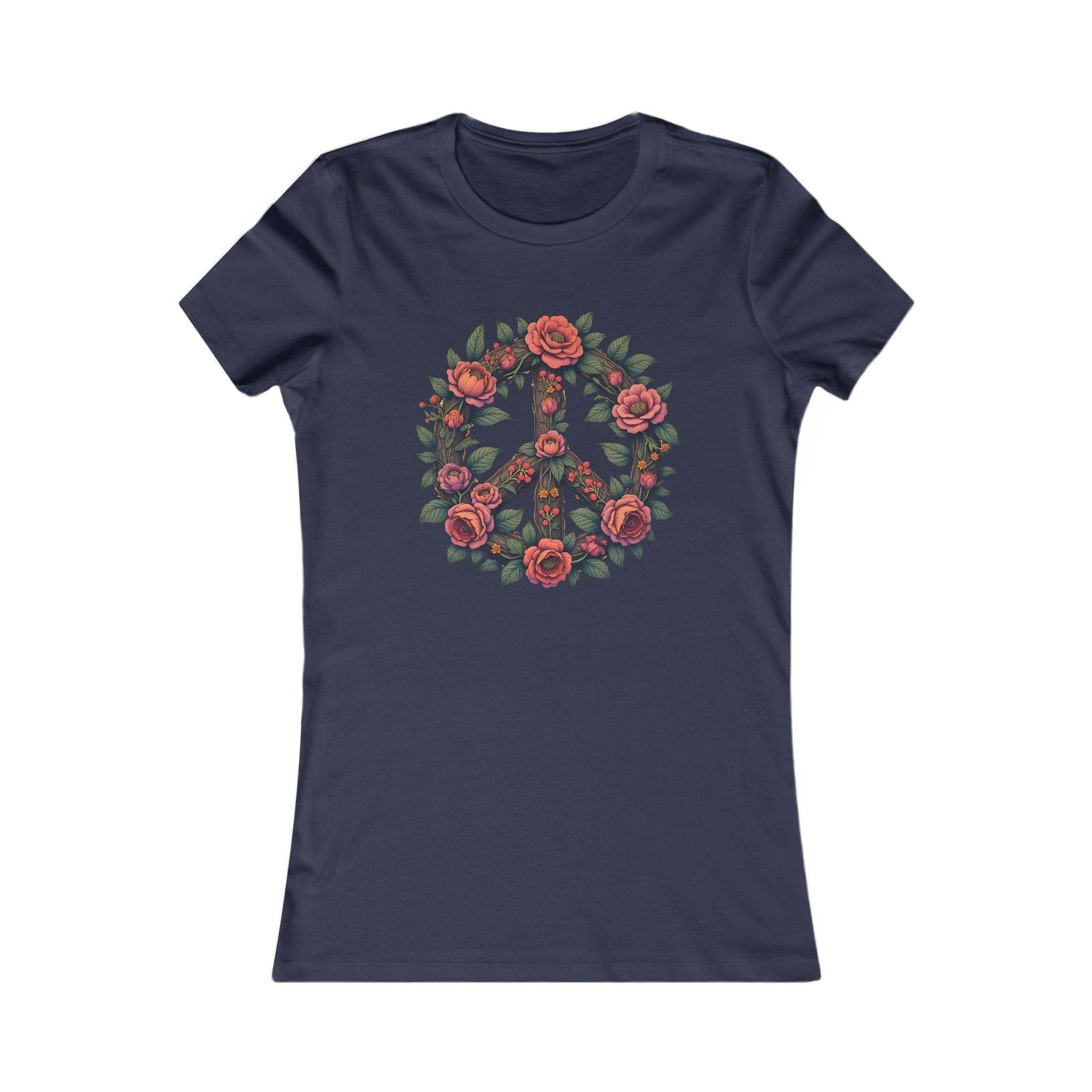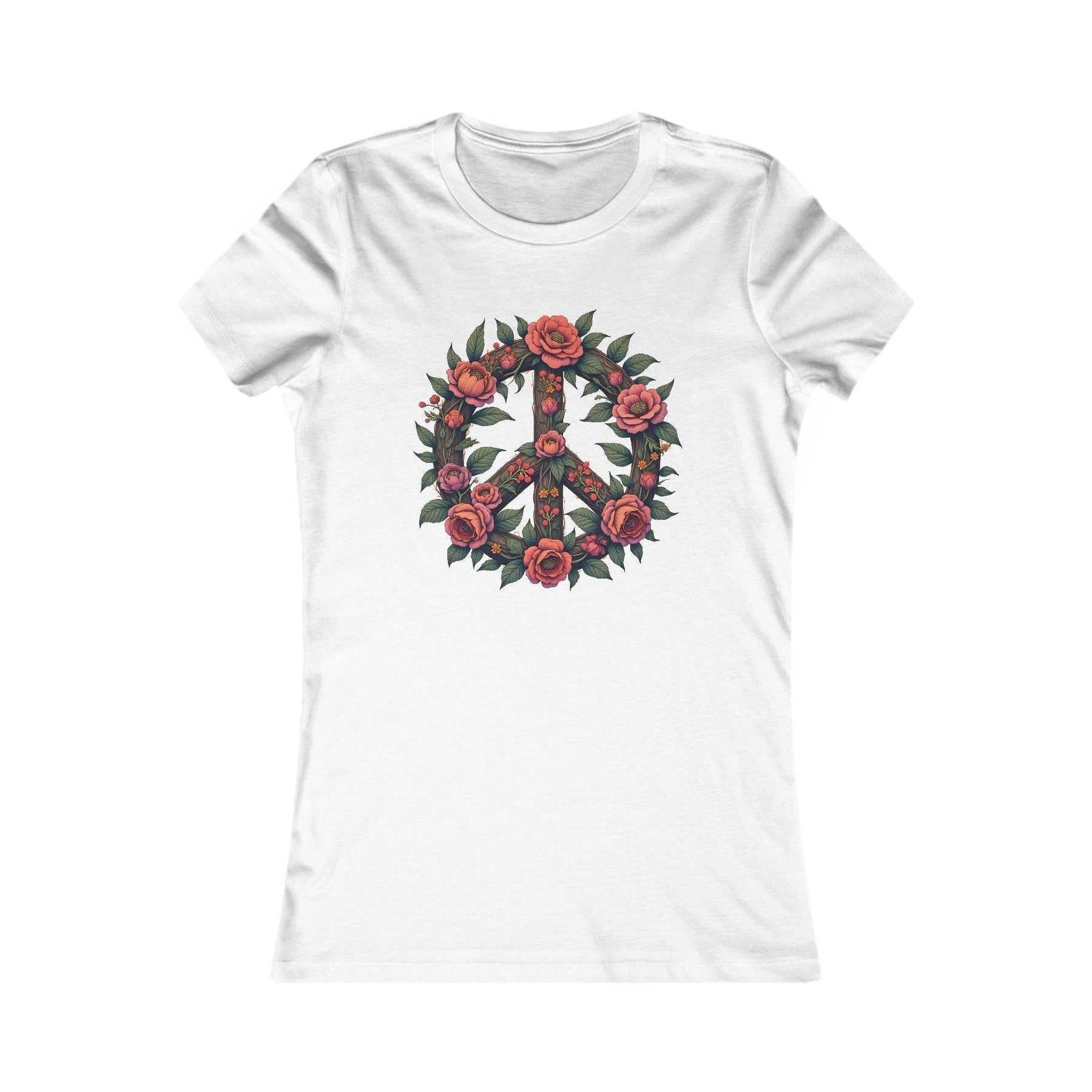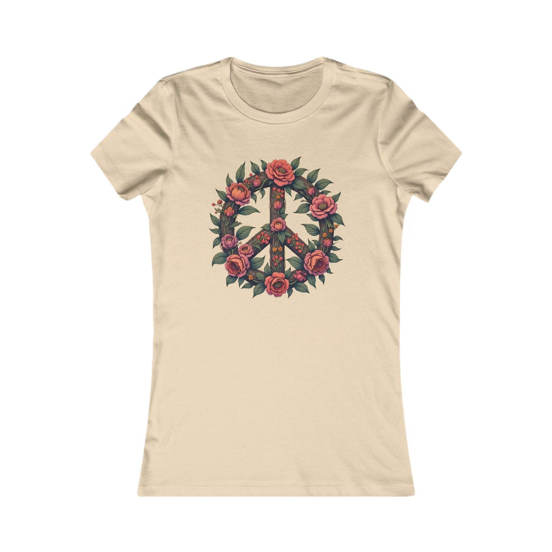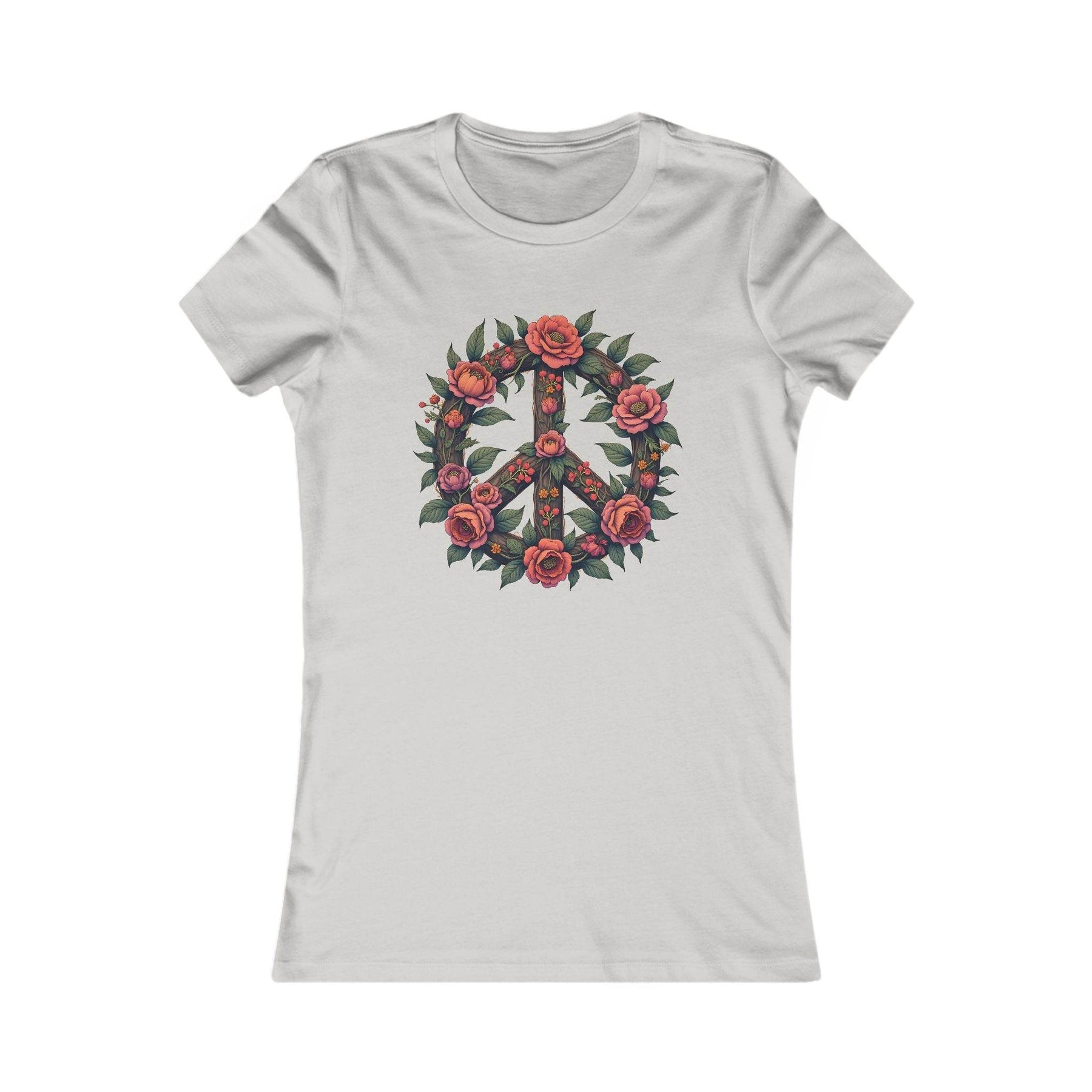The floral peace symbol t-shirt uses high-quality cotton that stays comfortable all day. It is lightweight and easy to layer with jackets or cardigans. The fit is flattering and relaxed. Everyone will notice the detailed graphic art on the chest.