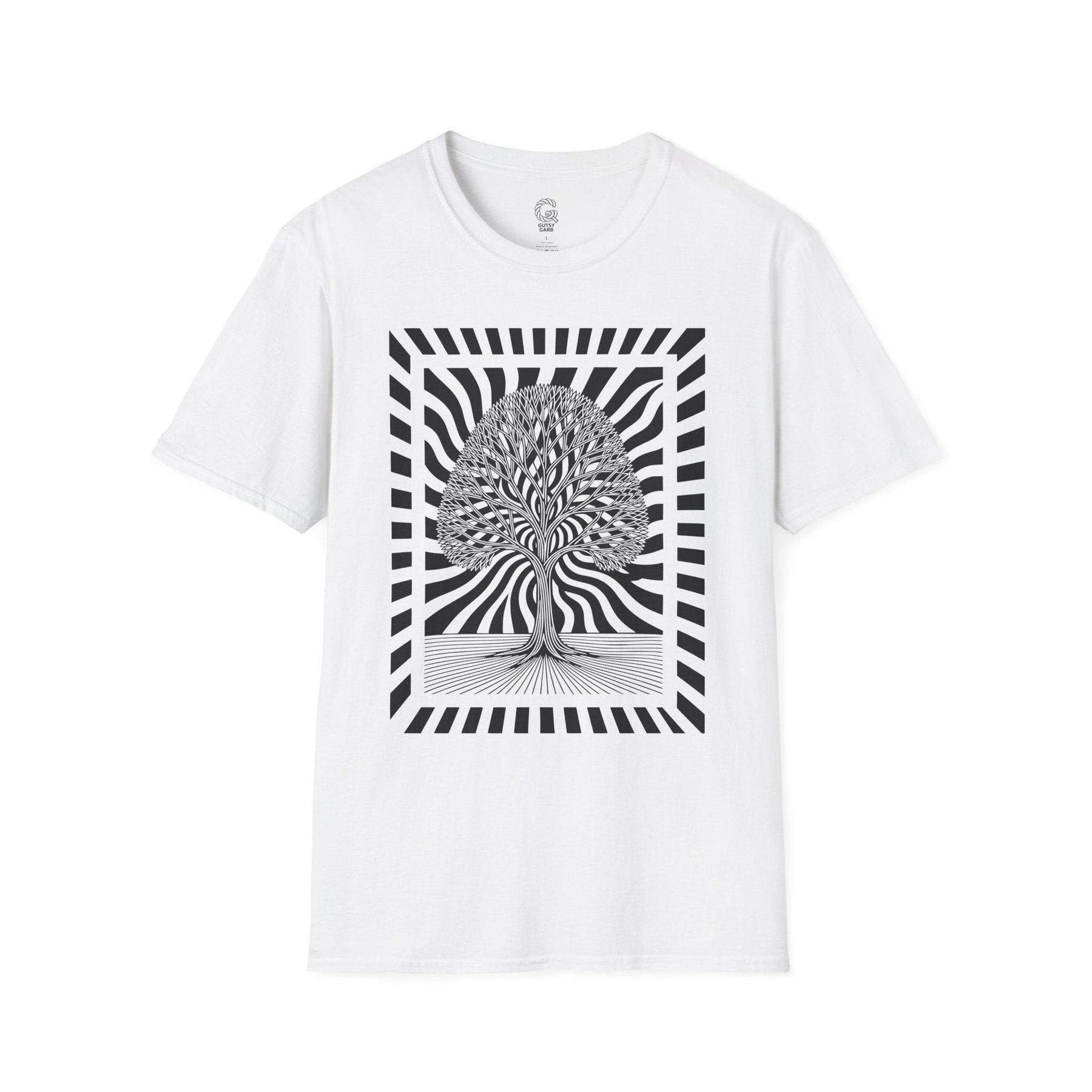 Step up your wardrobe with the Nature's Embrace: Black & White Tree Tee from Gutsy Garb. This shirt showcases a bold graphic of a tree, making it the perfect nature inspired bold t-shirt for any statement look. The black and white contrast delivers a striking visual impact. It turns heads with every wear.