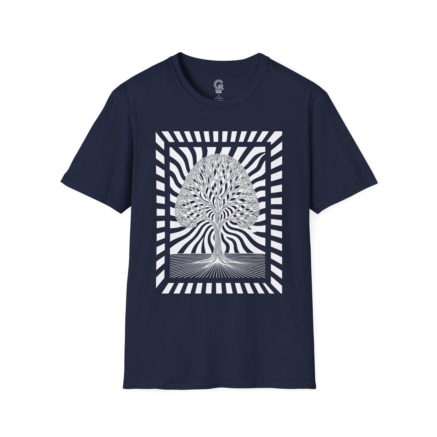 The graphic design stands out in every crowd. Black and white lines frame the detailed tree. The print resists fading after many washes. The cut fits true to size and flatters all body shapes.