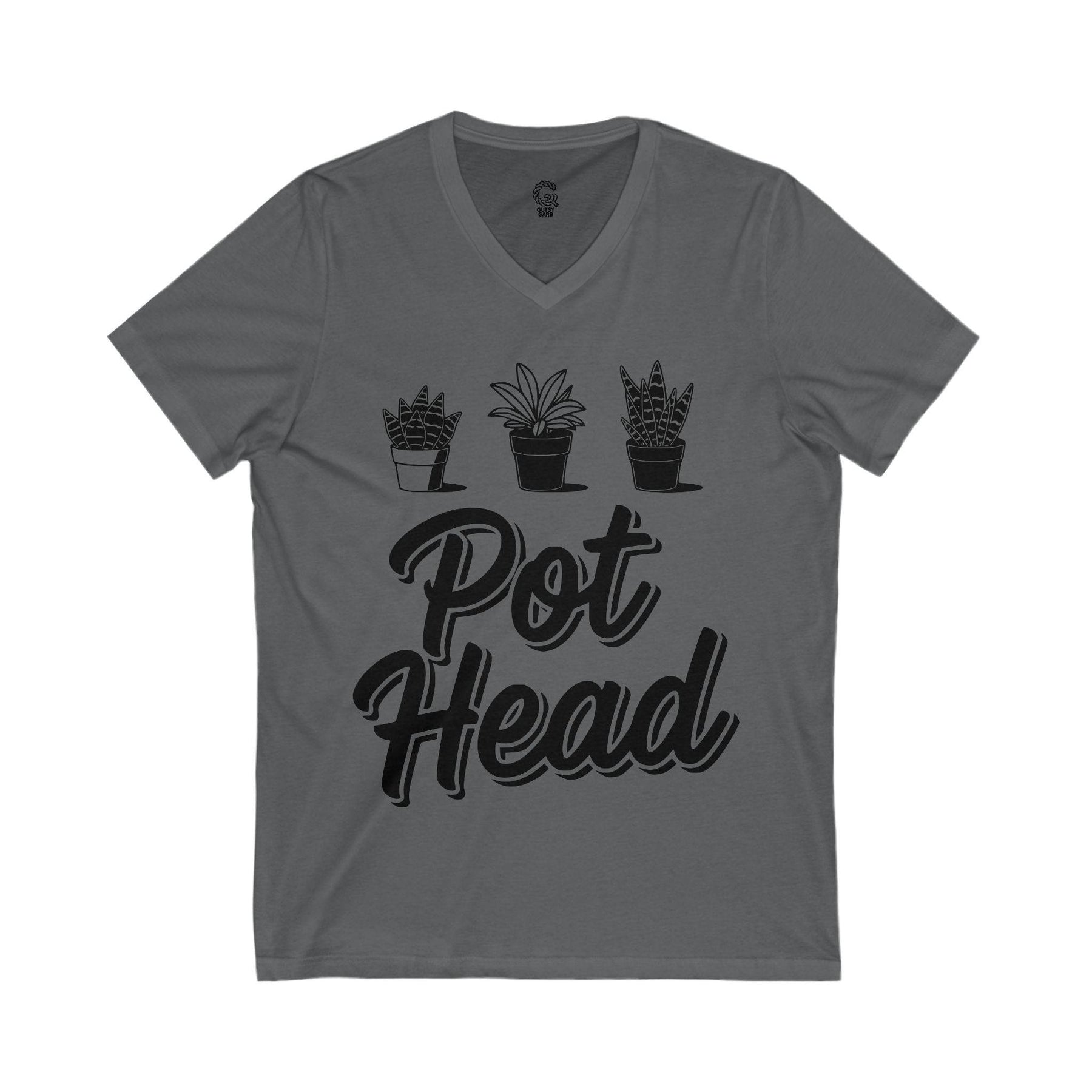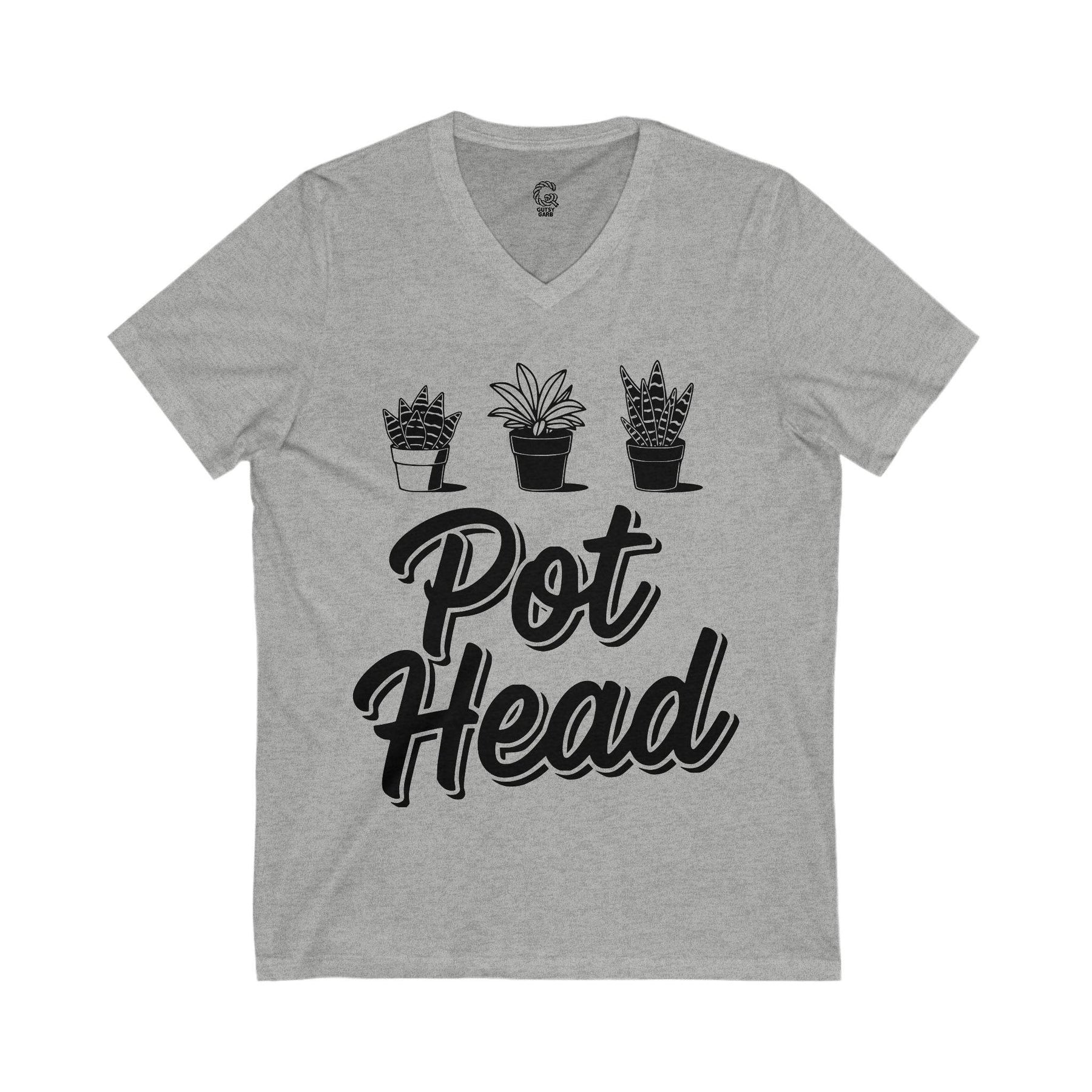 The Plant Love V-Neck Tee brings effortless style and comfort to any outfit. This plant lover v-neck shirt features a playful graphic—three potted plants above the words "Pot Head." Made from lightweight, eco-friendly fabric, this v-neck shirt feels soft and smooth against the skin.