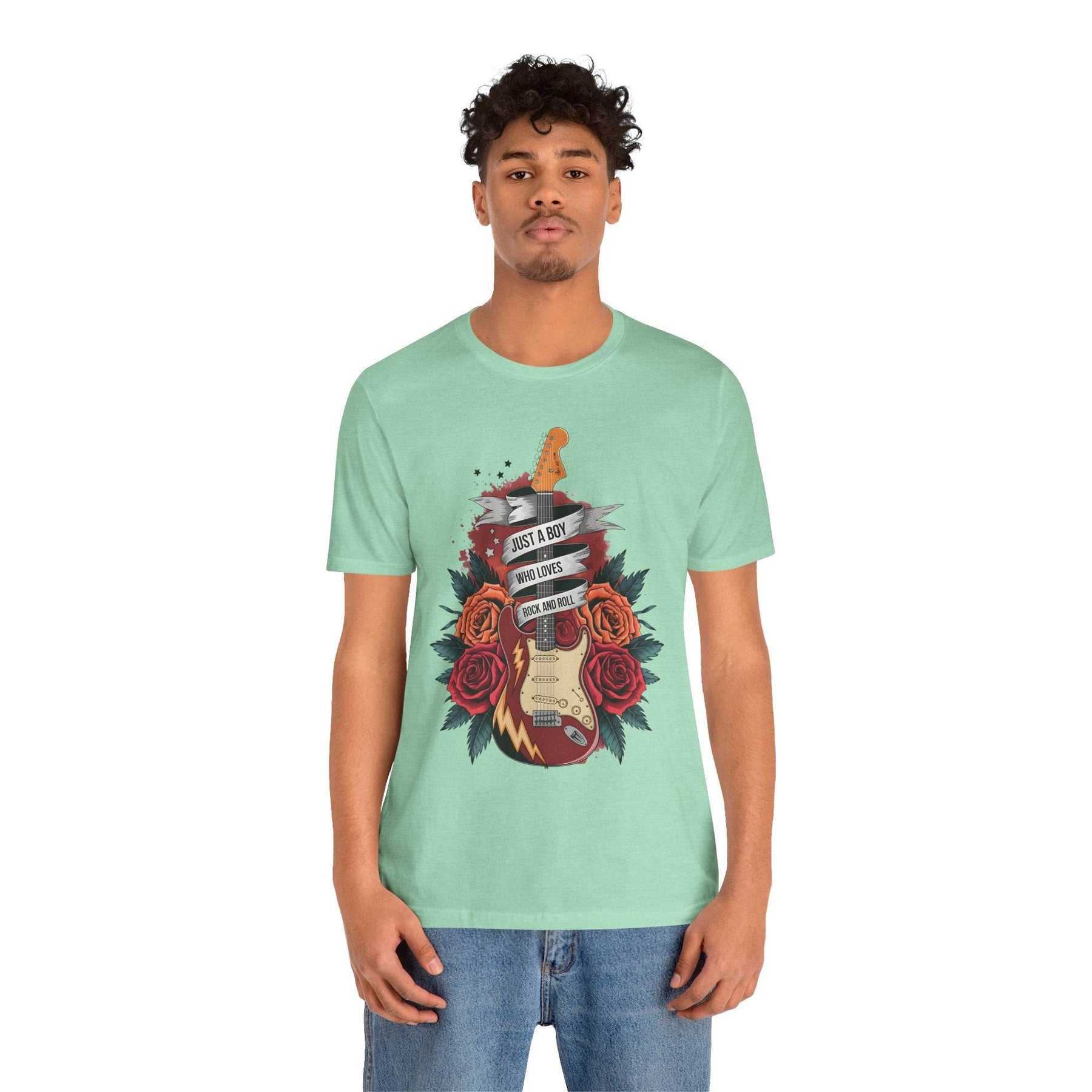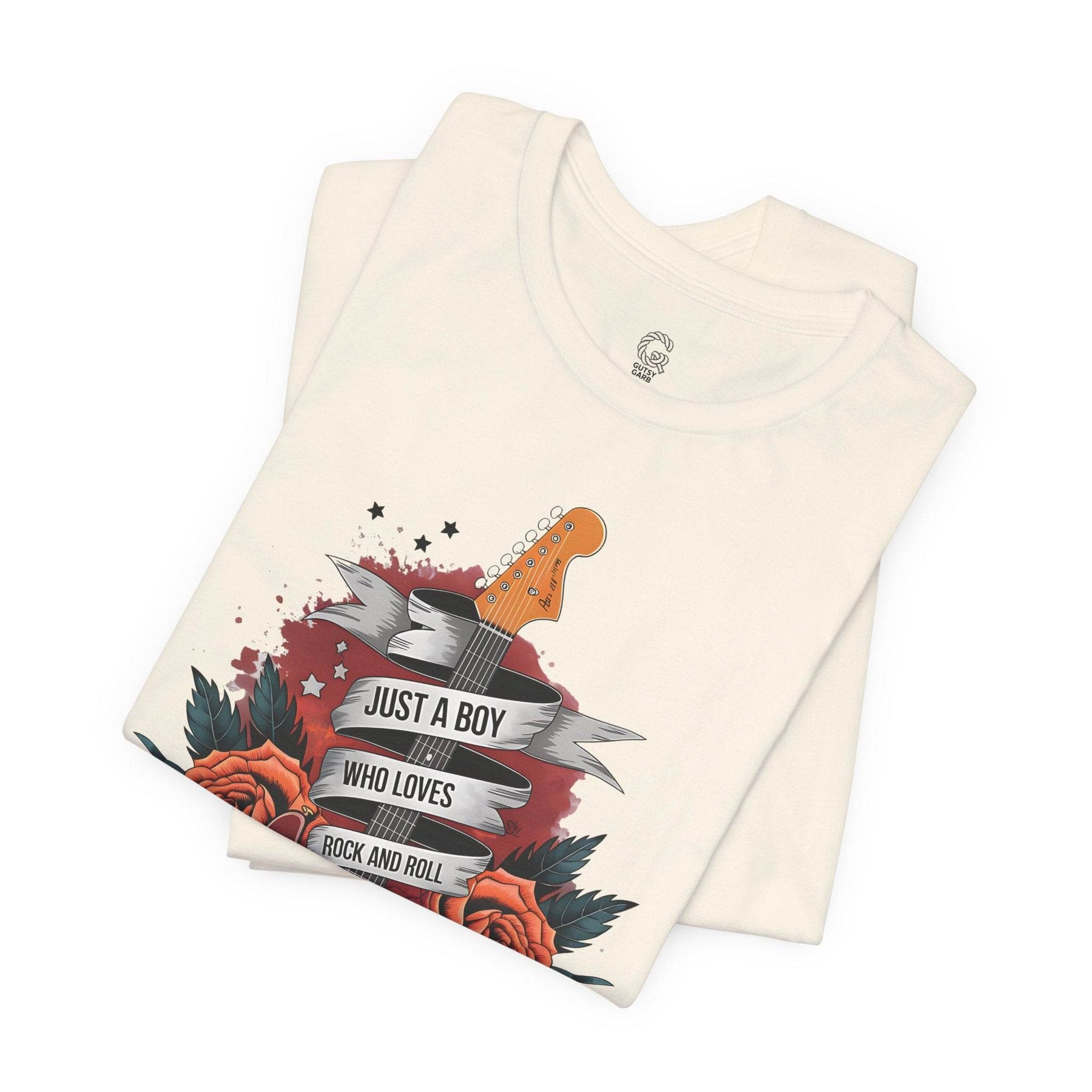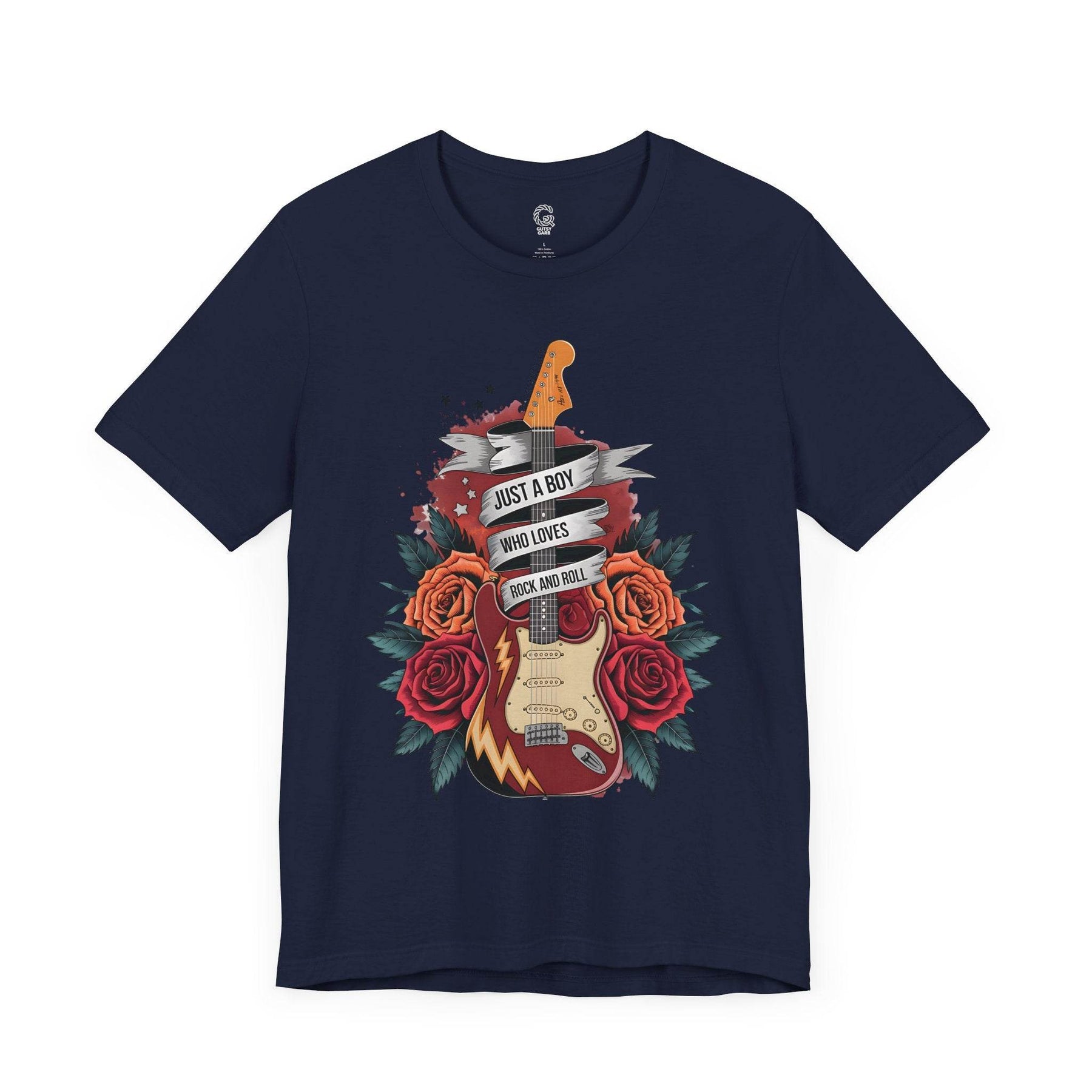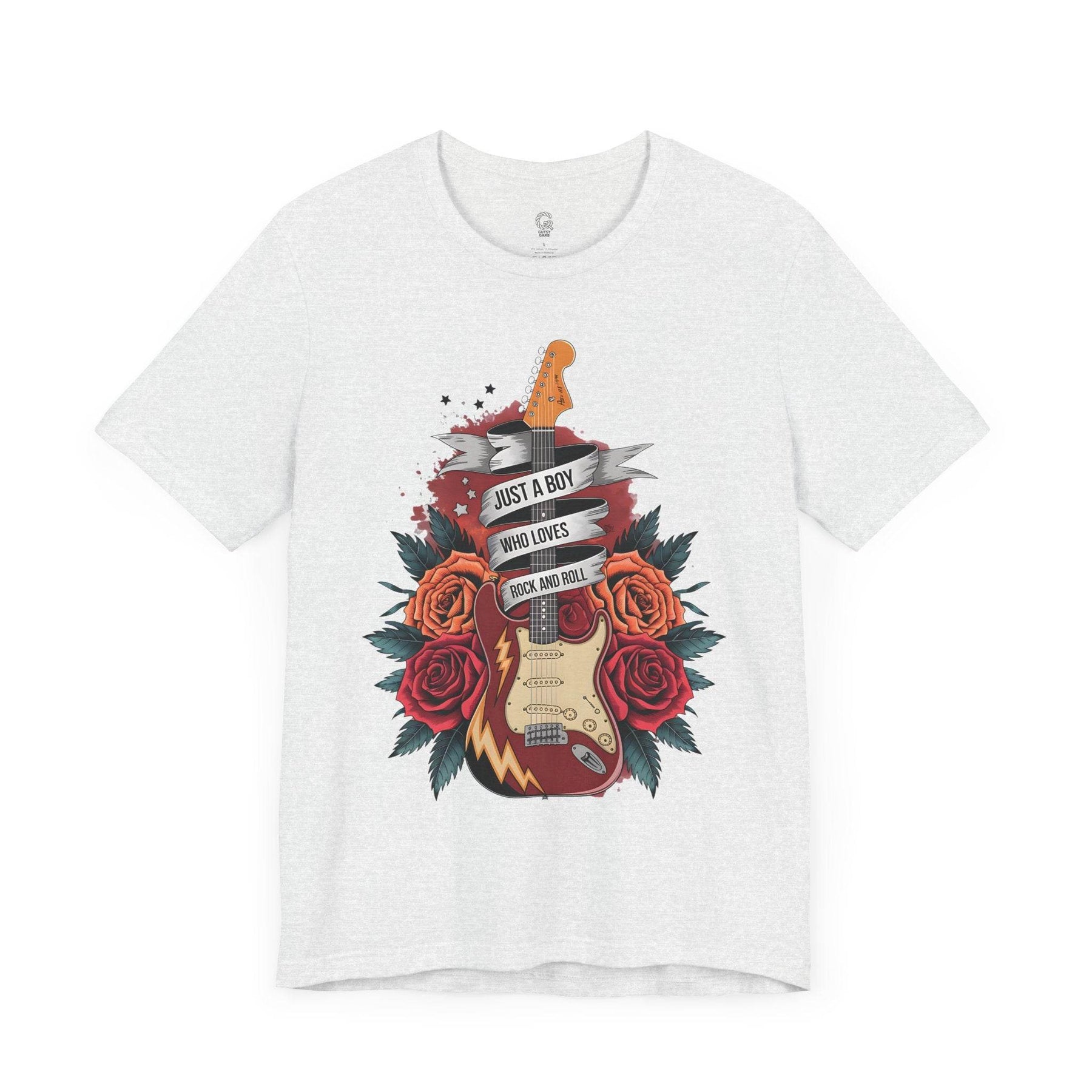 Step into the spotlight with the rockstar vibes t-shirt from Gutsy Garb. This shirt is for true music lovers and concert fans. The graphic design features a bold electric guitar, vibrant roses, and a banner that pops against the soft fabric.