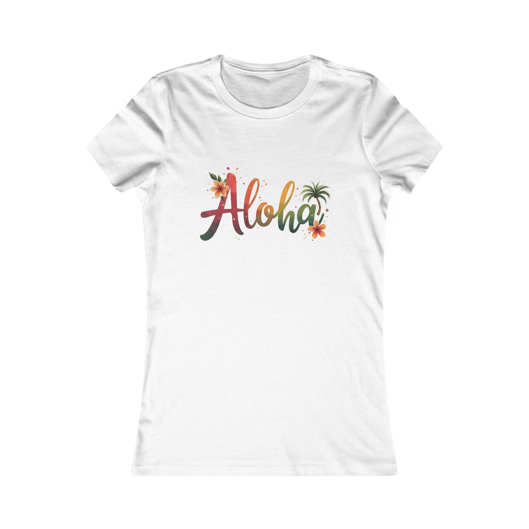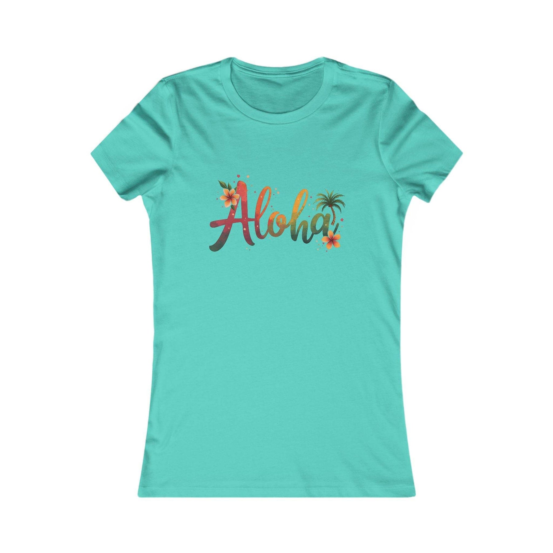 Gift this tropical aloha womens t-shirt to someone who loves vibrant fashion. The bright logo suits laid-back vacations, lively parties, or everyday errands. You can pair this tee with sandals and sunglasses for a complete summer look.