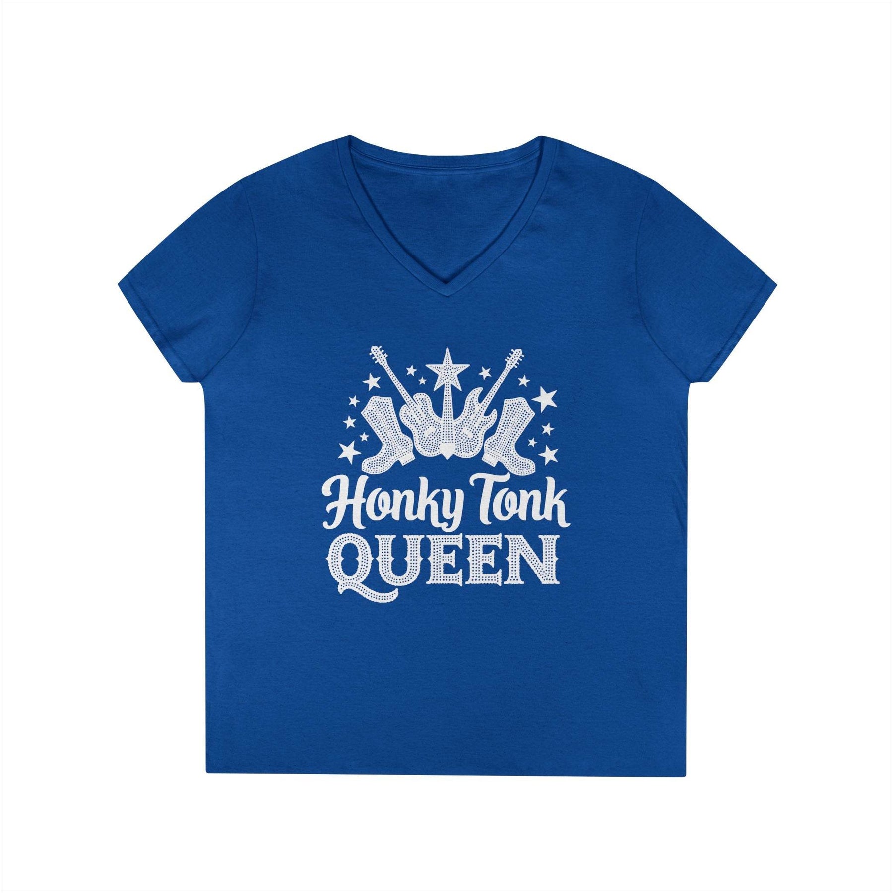 Step into style with the Country Vibes V-Neck Tee for Music Lovers. This shirt is perfect for anyone who wants a country music t-shirt for women. The bold 'Honky Tonk Queen' design adds a bit of edge and fun. Soft fabric feels great all day. The v-neck cut flatters every shape. It works for concerts, line dancing, or any casual outing.