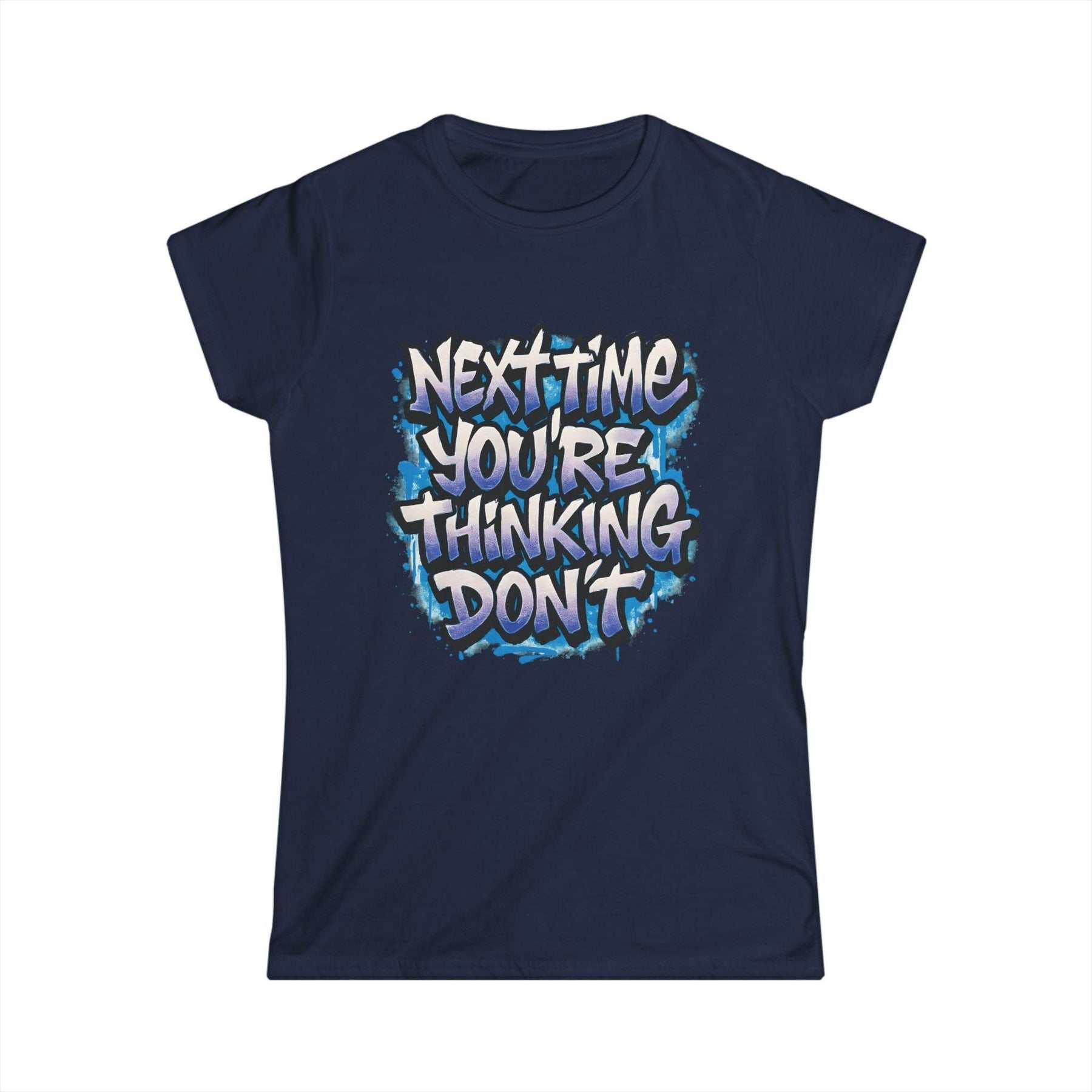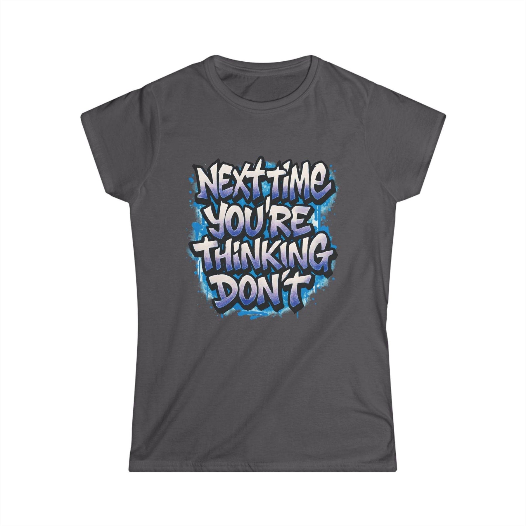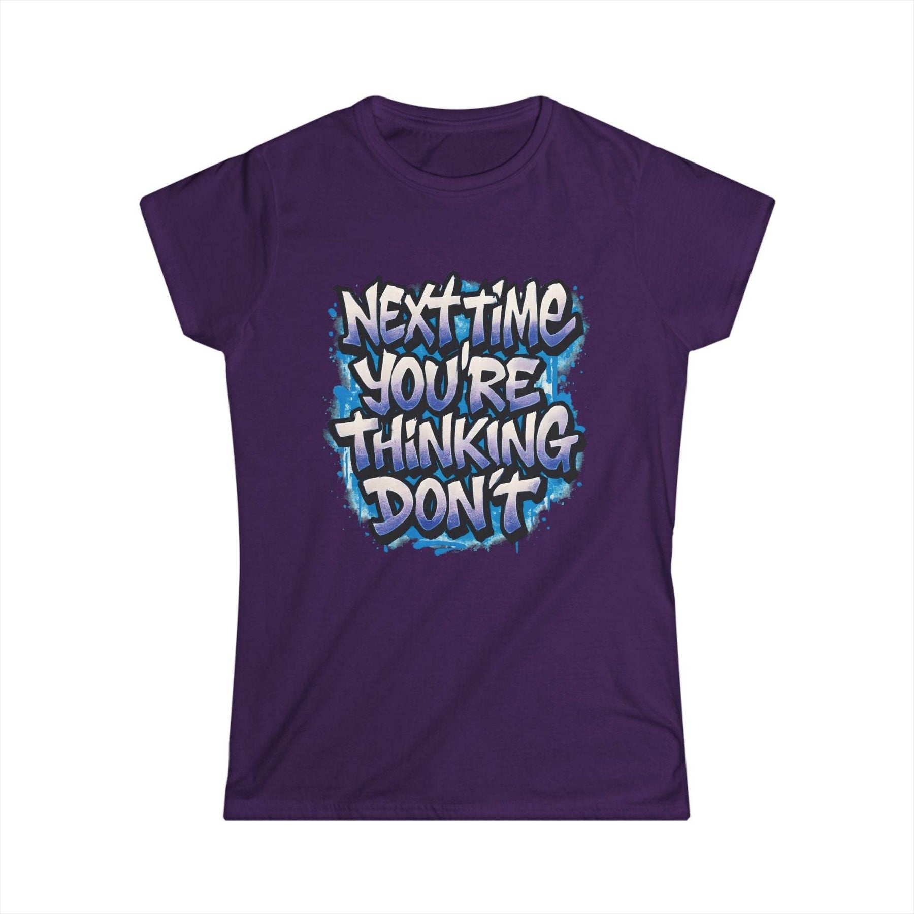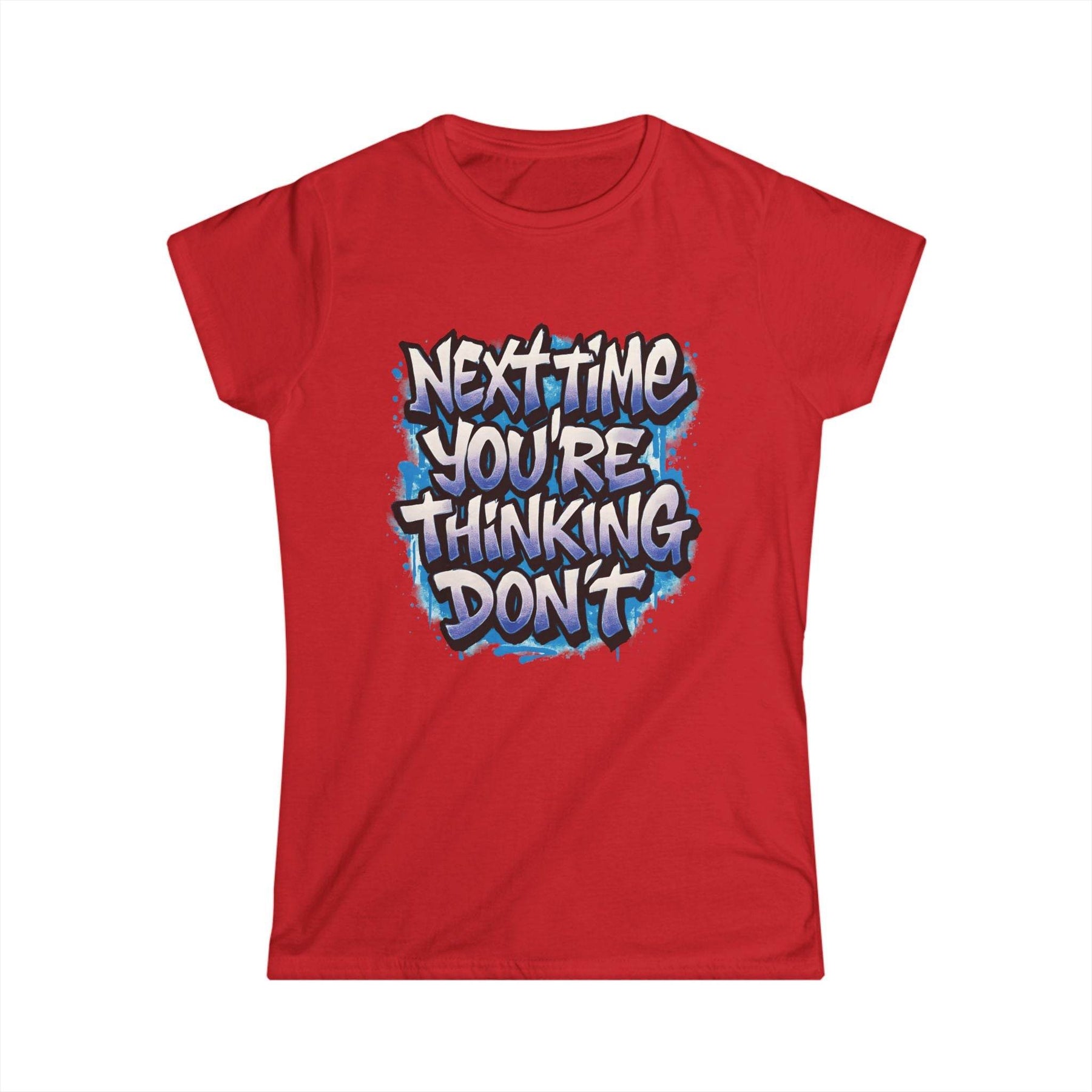 Add a dash of playful attitude to your wardrobe with this sarcastic women's t-shirt from Gutsy Garb. This shirt stands out with its bold graphic and cheeky message. The design reads, "Next time you’re thinking, don’t," delivering the perfect mix of humor and style.