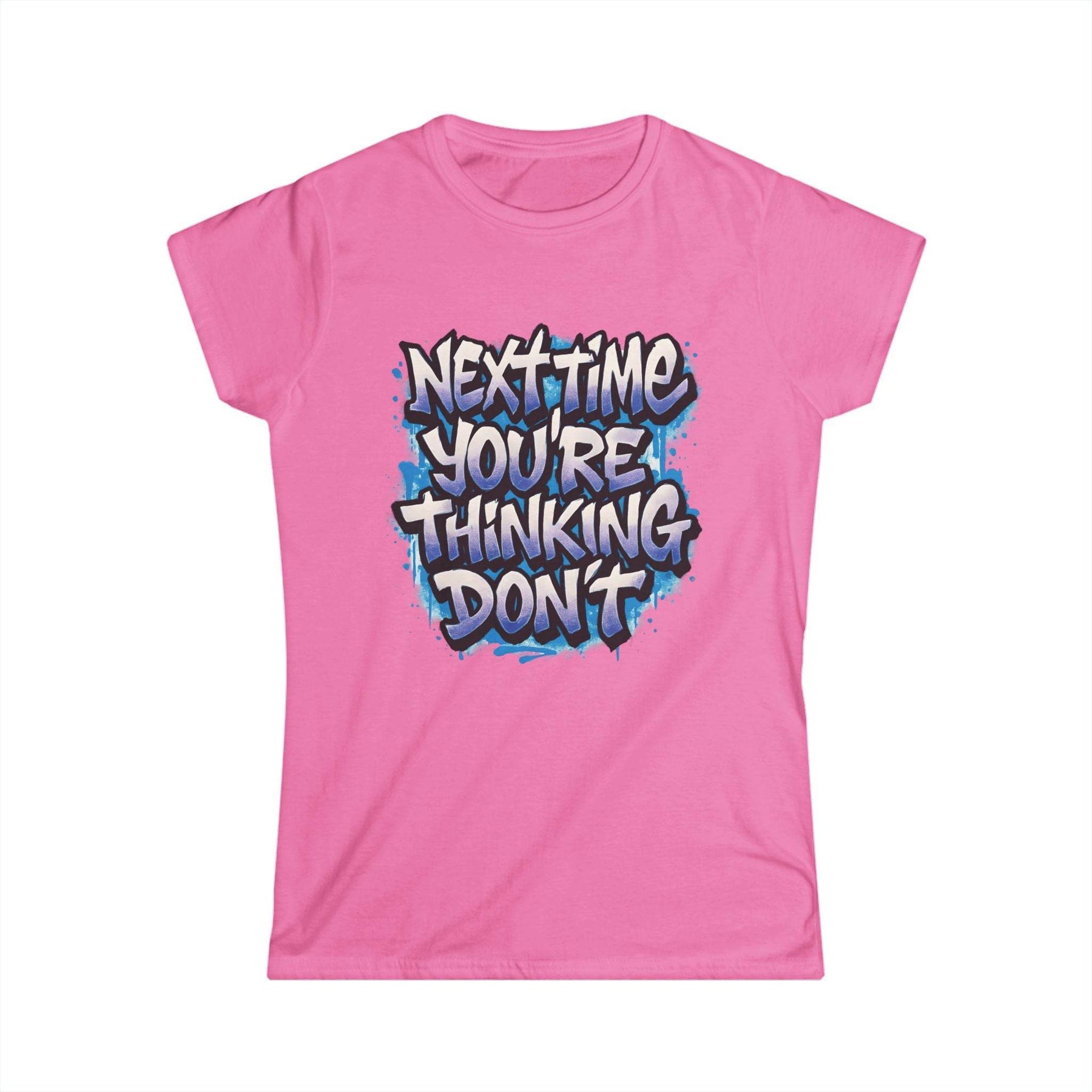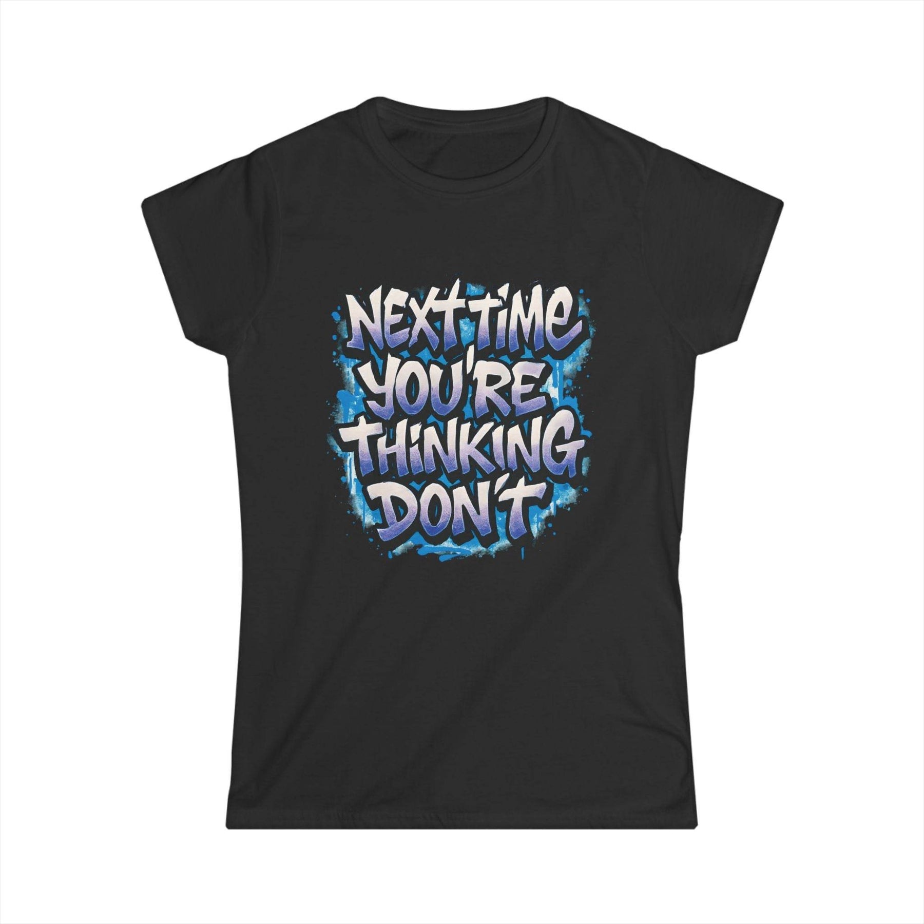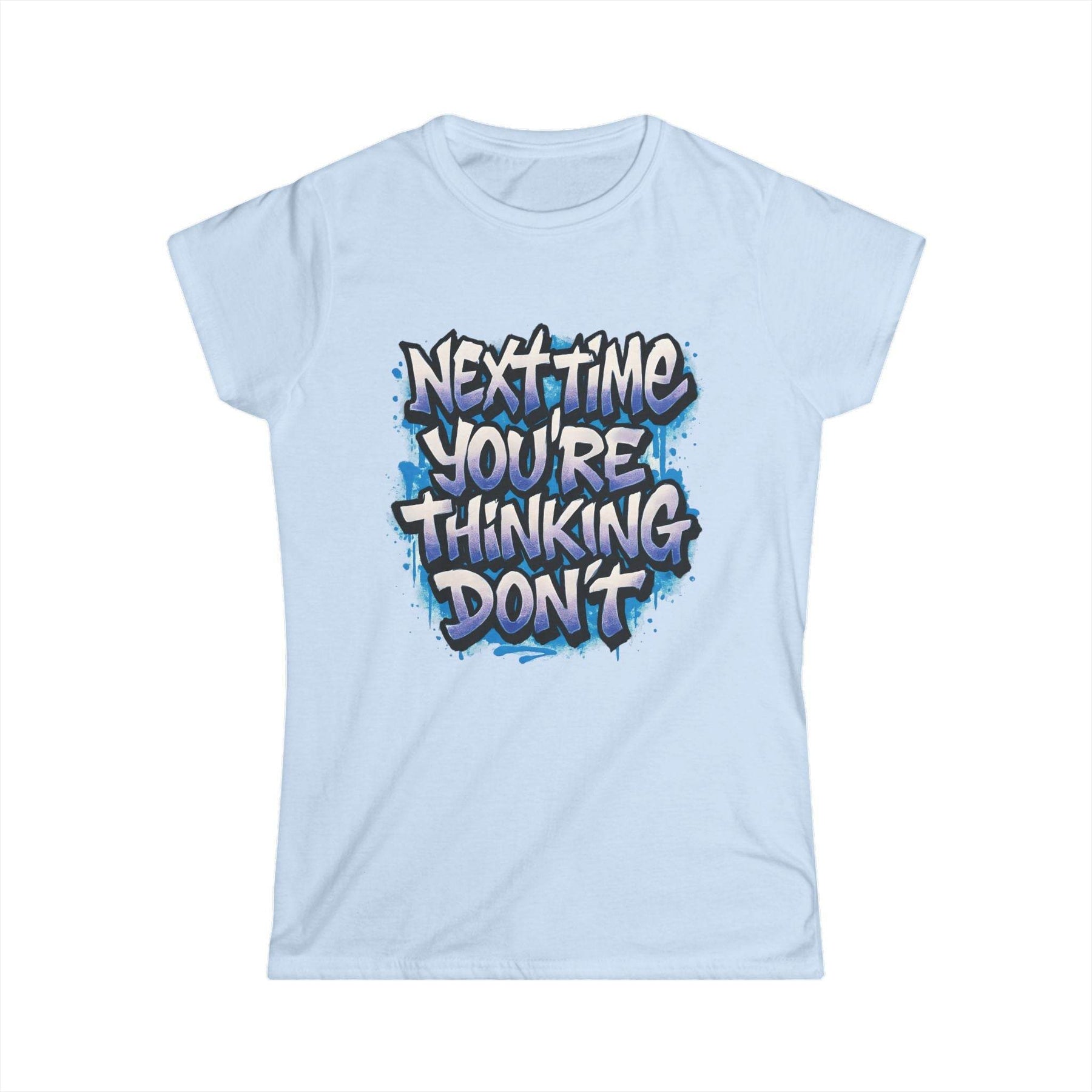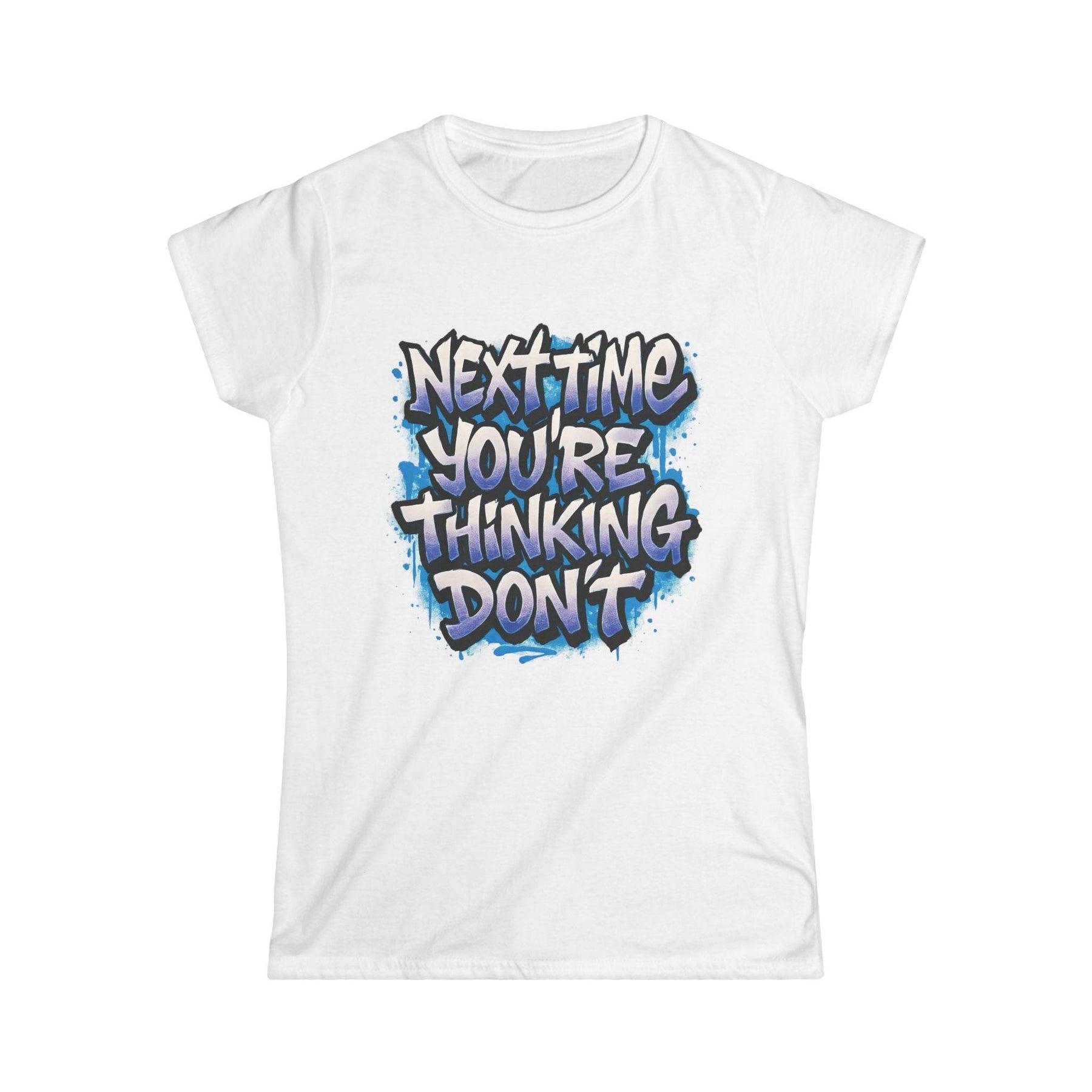 Add a dash of playful attitude to your wardrobe with this sarcastic women's t-shirt from Gutsy Garb. This shirt stands out with its bold graphic and cheeky message. The design reads, "Next time you’re thinking, don’t," delivering the perfect mix of humor and style.