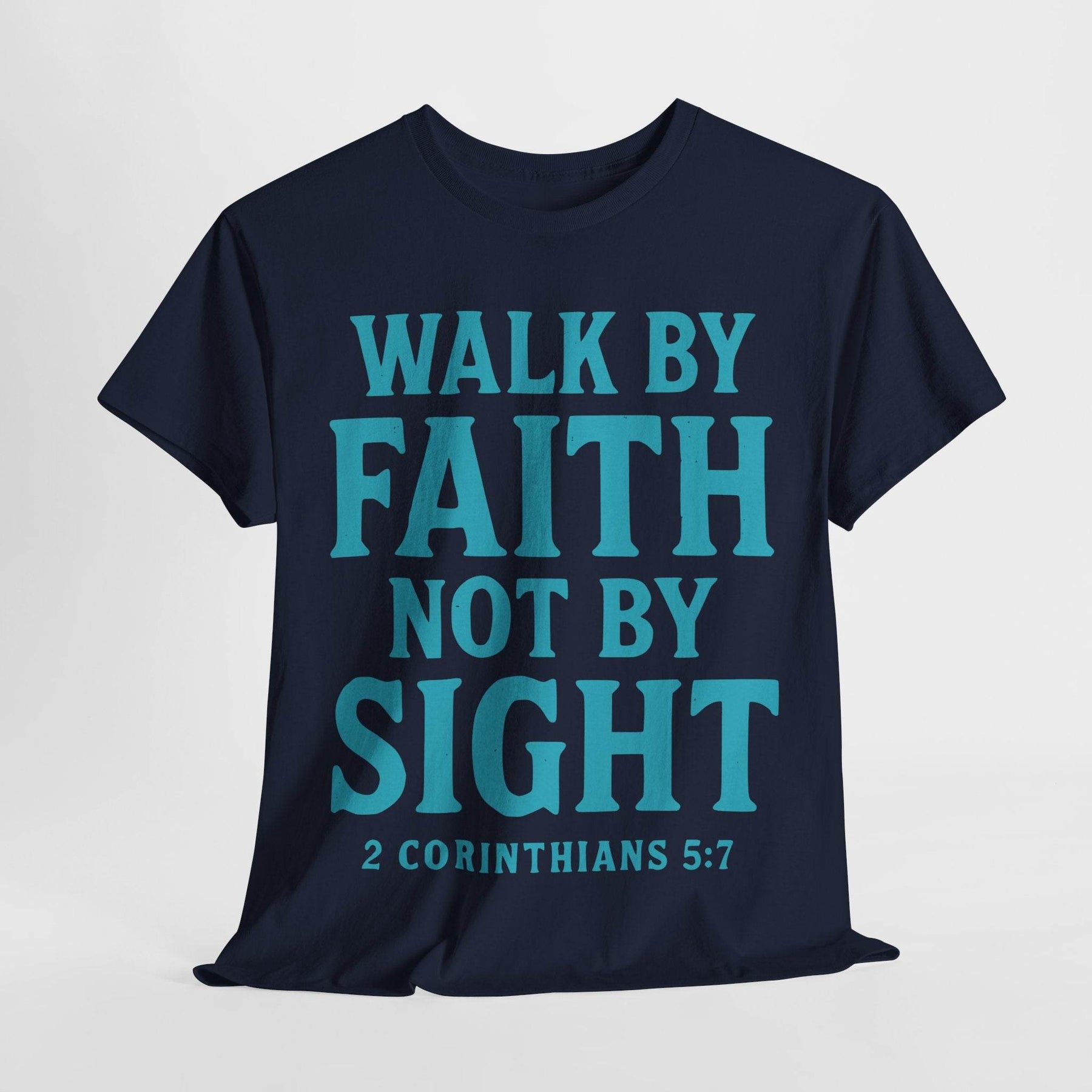 Embrace daily inspiration with this faith inspired motivational t-shirt from Gutsy Garb. Designed for those who live boldly, this tee brings a mix of encouragement and style. The phrase "Walk by faith, not by sight" stands out as a daily reminder. Every letter is crisp, making your message clear wherever you go.