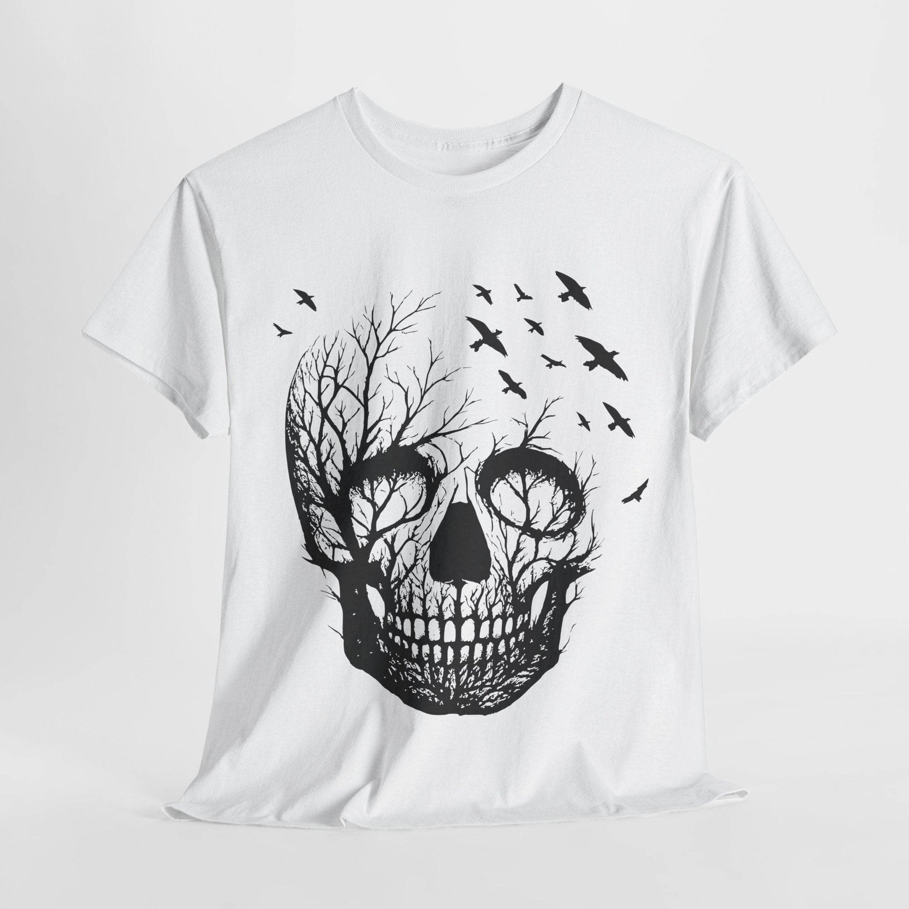 The skull and birds graphic tee is made from soft cotton. The material feels smooth against the skin. You get comfort for all-day wear. The unisex fit means this shirt works for every body type and is easy to layer with your favorite outfits. Pair it with jeans or under a jacket for a look that stands out.