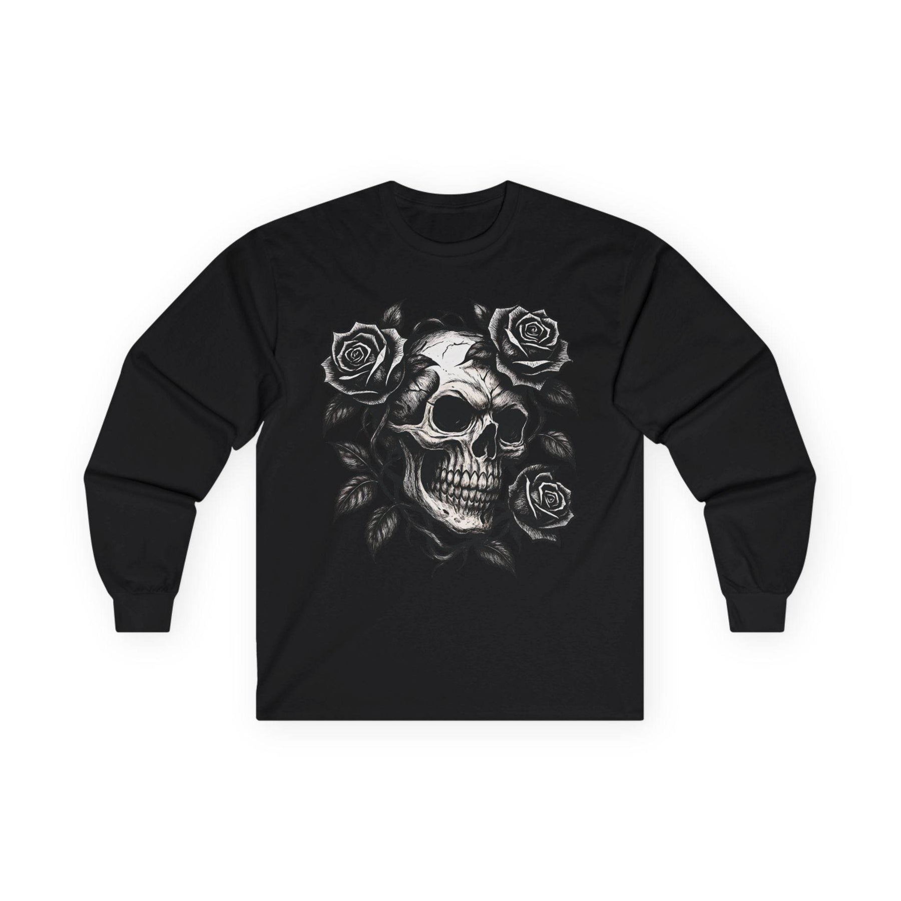 Skull and Roses Long Sleeve Shirt - Edgy Style - Gutsy Garb