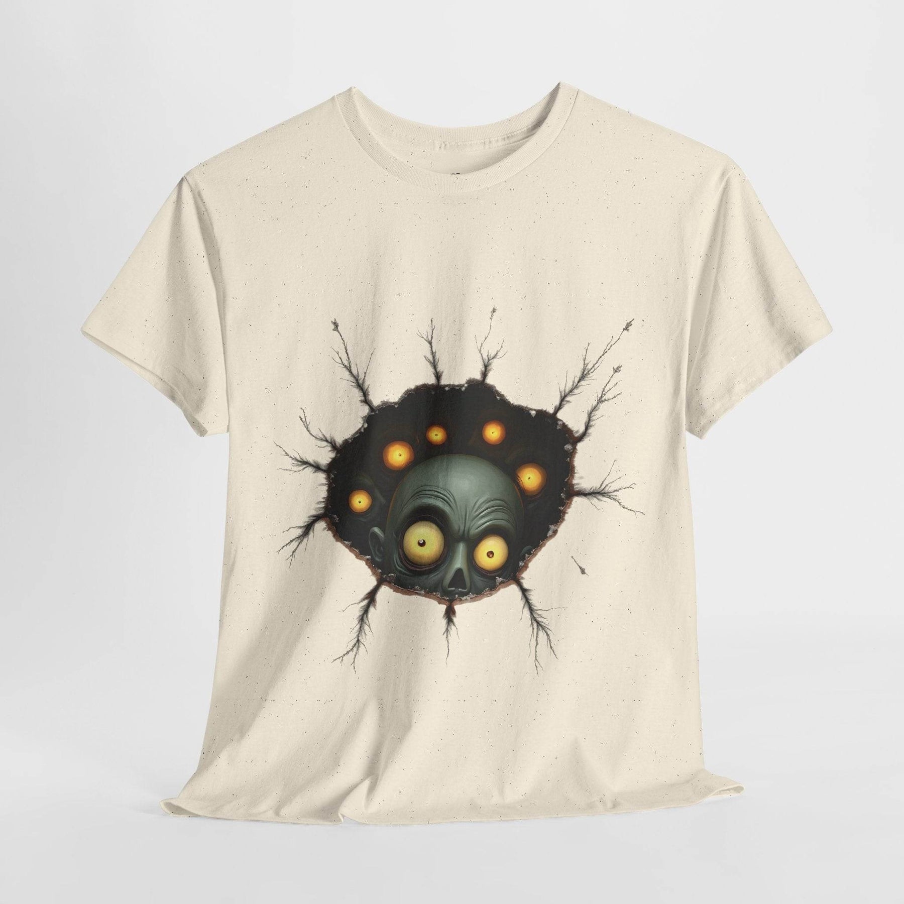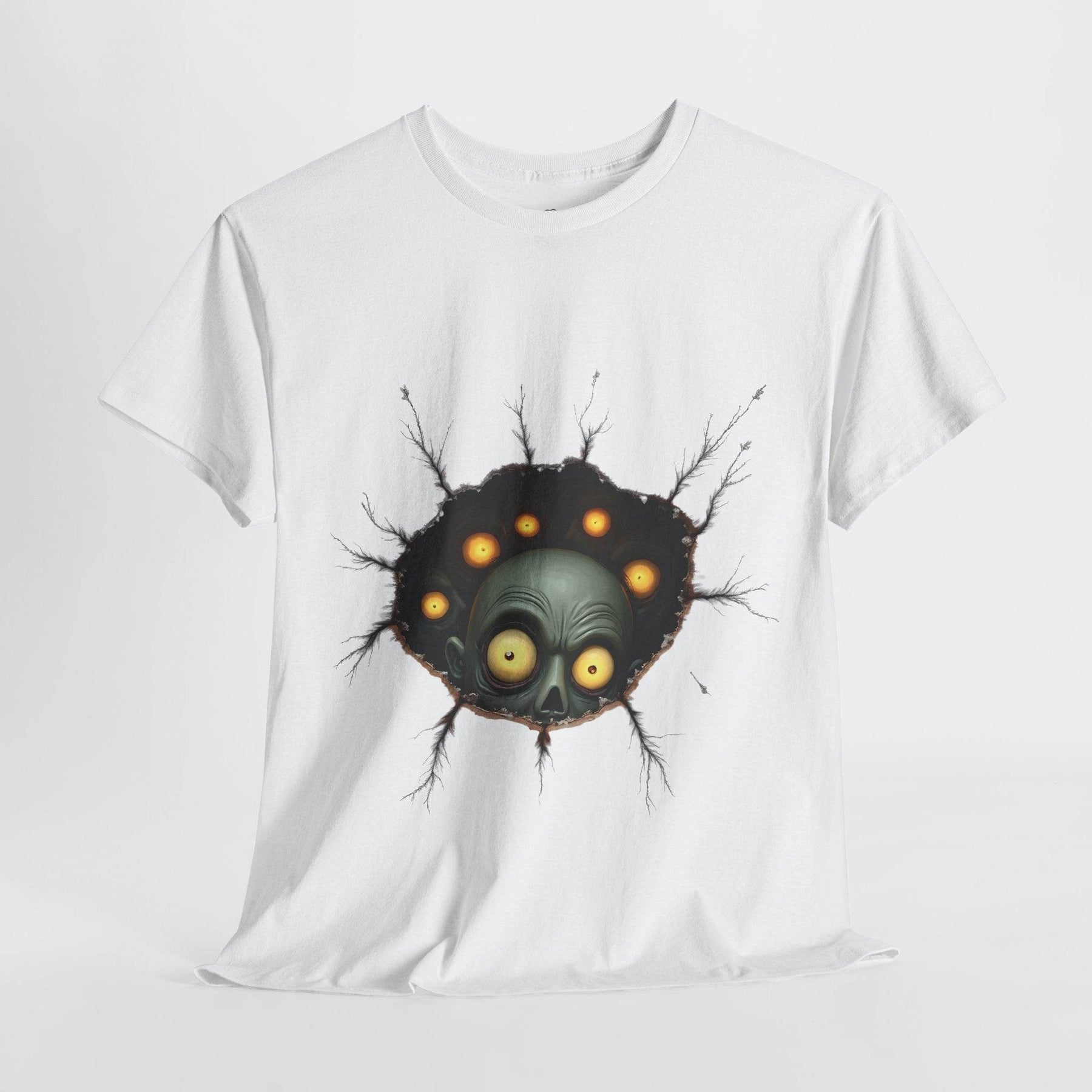 The print stands out with detailed graphics. Each feature looks vivid in person. The t-shirt's unisex fit flatters all body types. It helps everyone look confident as they join Halloween festivities. Gutsy Garb focuses on edgy designs. This shirt is a must for any horror fan.