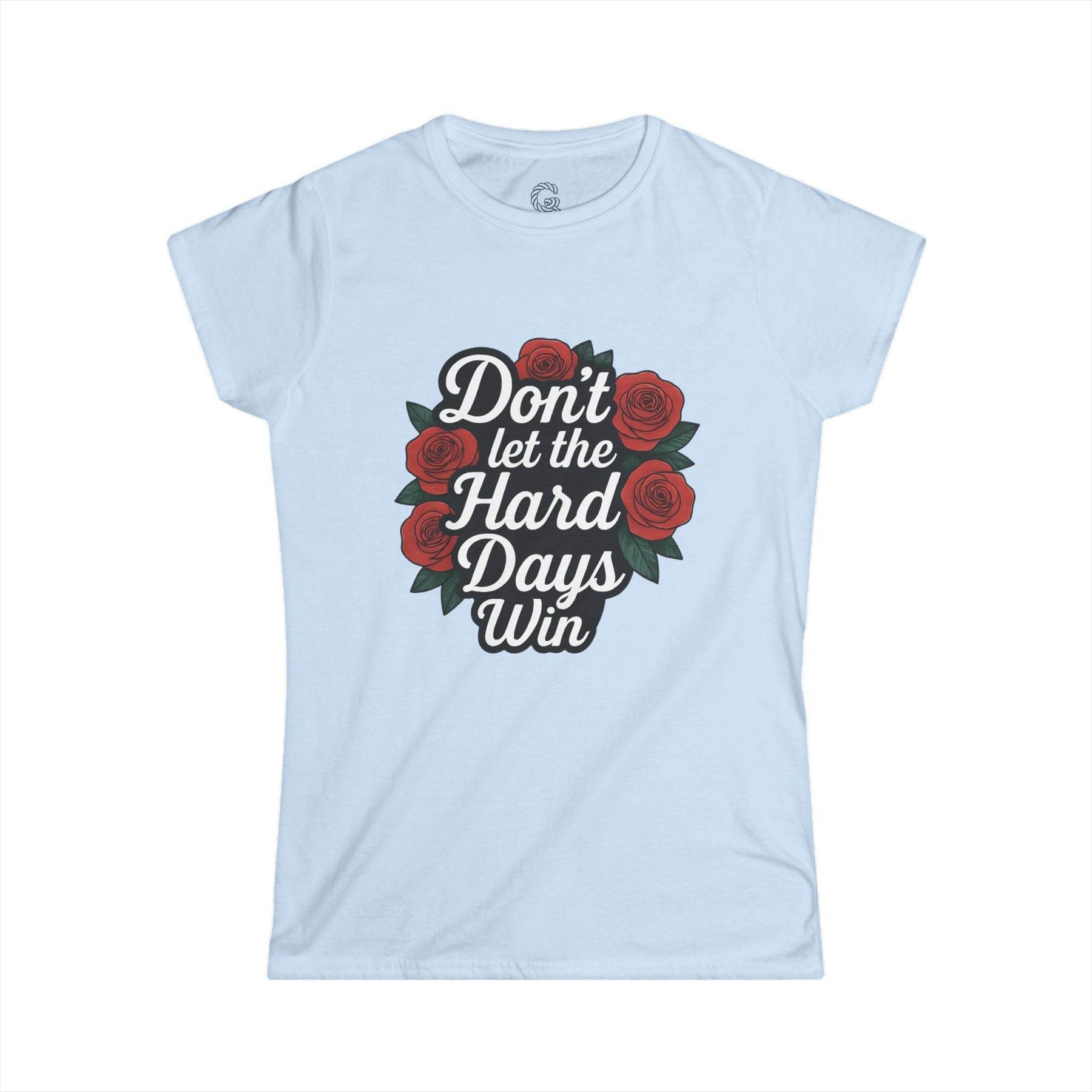 The bold message, “Don’t let the hard days win,” stands out on the soft, heather gray fabric. The bright red roses add contrast and make the design eye-catching. This makes it clear that the Resilient Spirit Tee is created for those who appreciate confidence empowering apparel that supports self-worth.