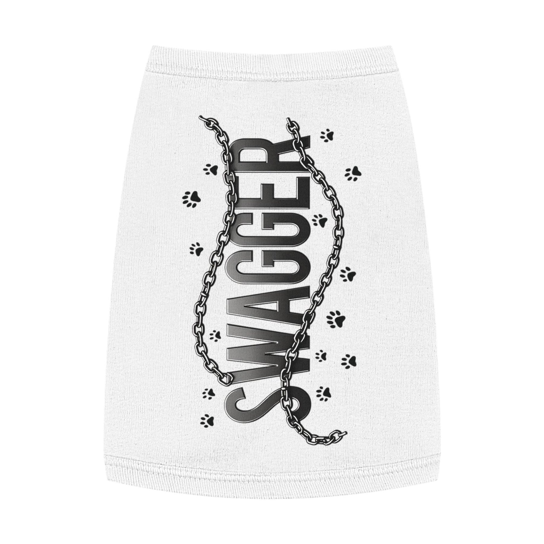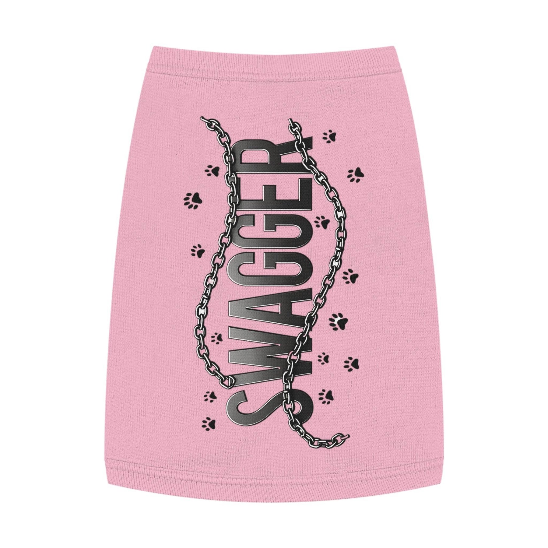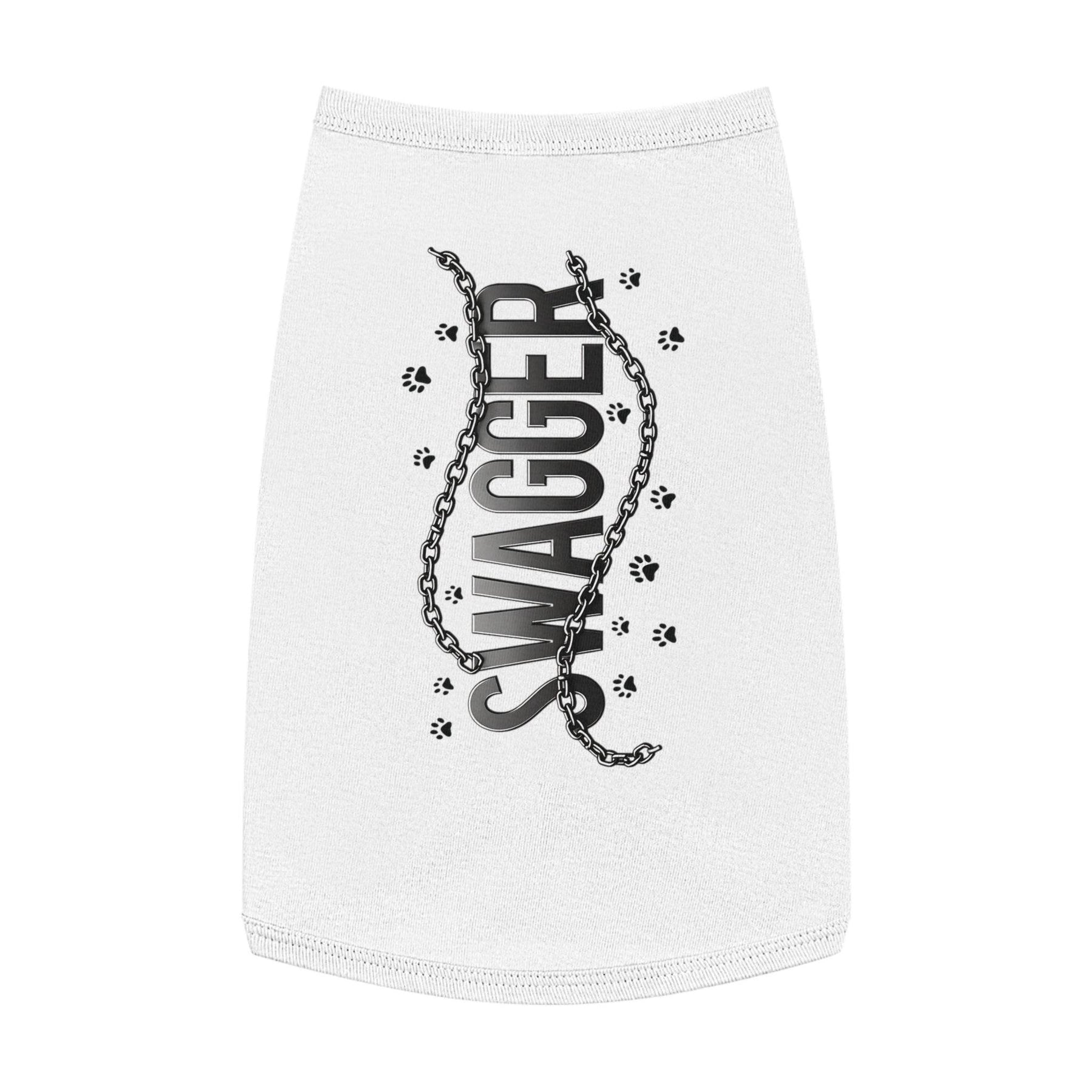 The design features a street-style print. The word SWAGGER appears in large letters. Chains and small paw prints add a unique touch. This swagger Dog apparel makes your pet look confident and stylish every day.