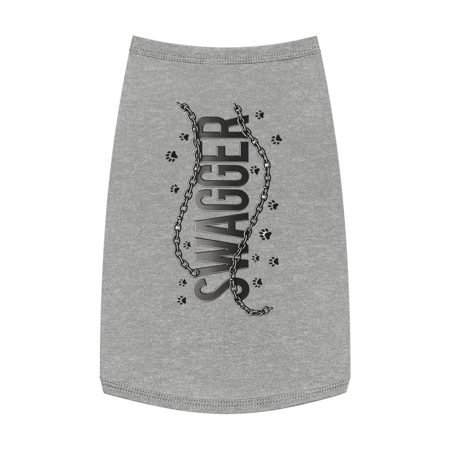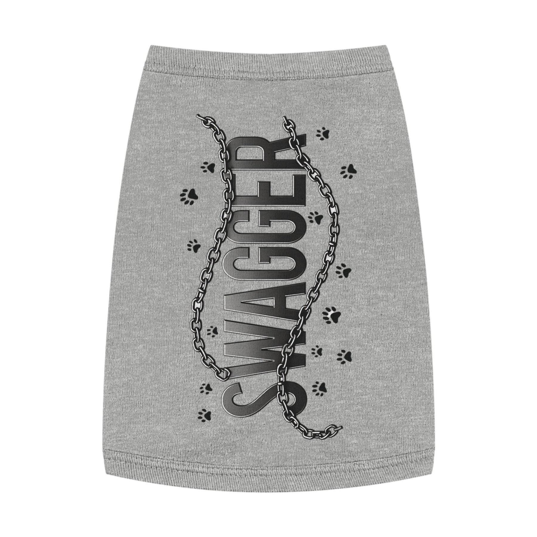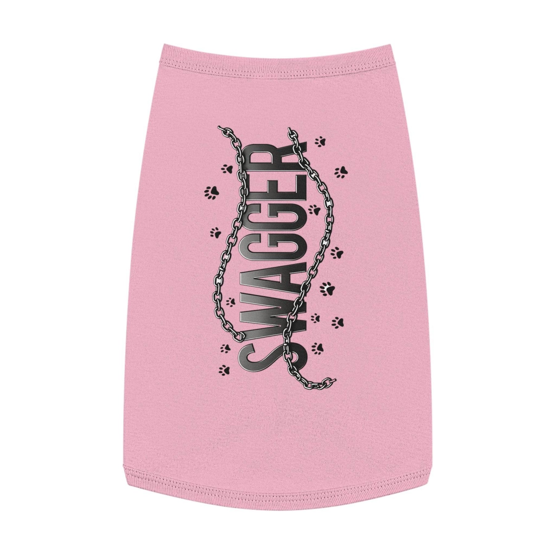 The design features a street-style print. The word SWAGGER appears in large letters. Chains and small paw prints add a unique touch. This swagger Dog apparel makes your pet look confident and stylish every day.