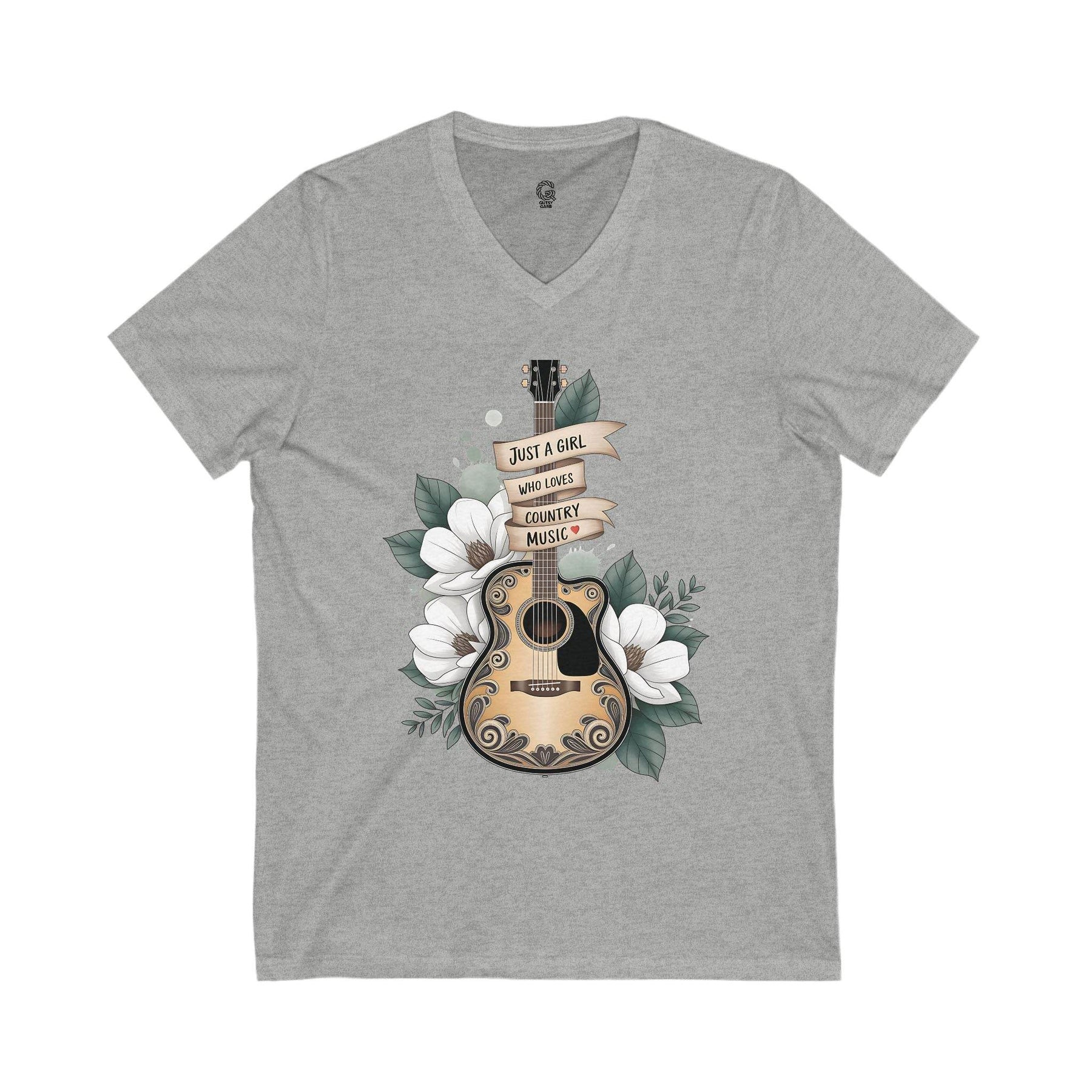 The design catches attention without being loud. The magnolia flowers bring a southern charm. The guitar artwork celebrates country music in a fresh way. This women's country v-neck shirt works with jeans, skirts, or shorts. You can layer it under jackets or cardigans for cooler days.